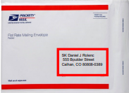 - Locate a Priority Padded Envleope in your box (the mailing label is already affixed to it)